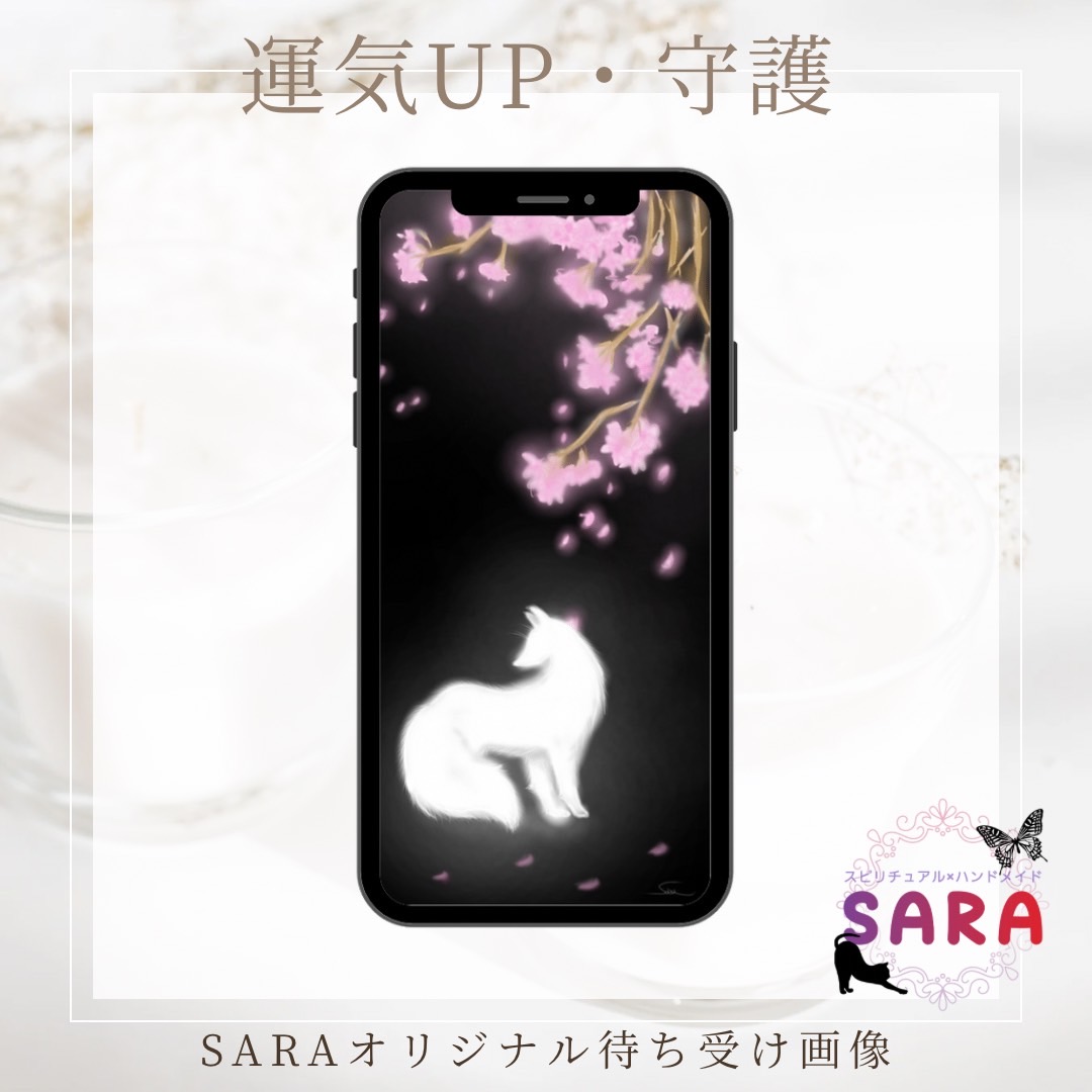 【運気UP・守護】夜桜と白狐【携帯待受け】